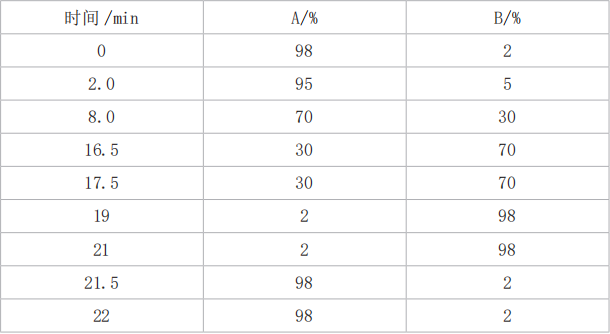 流动相:A:水(0.1% 甲酸) B:甲醇
