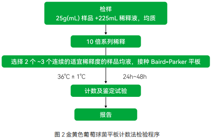 金黄色葡萄球菌平板计数法检验程序见图 2。