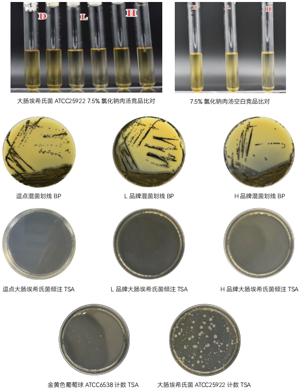 2、选择性 :大肠埃希氏菌 ATCC25922, L 品牌、 H 品牌、逗点均符合国标在 TSA 上< 100Cfu 要求。