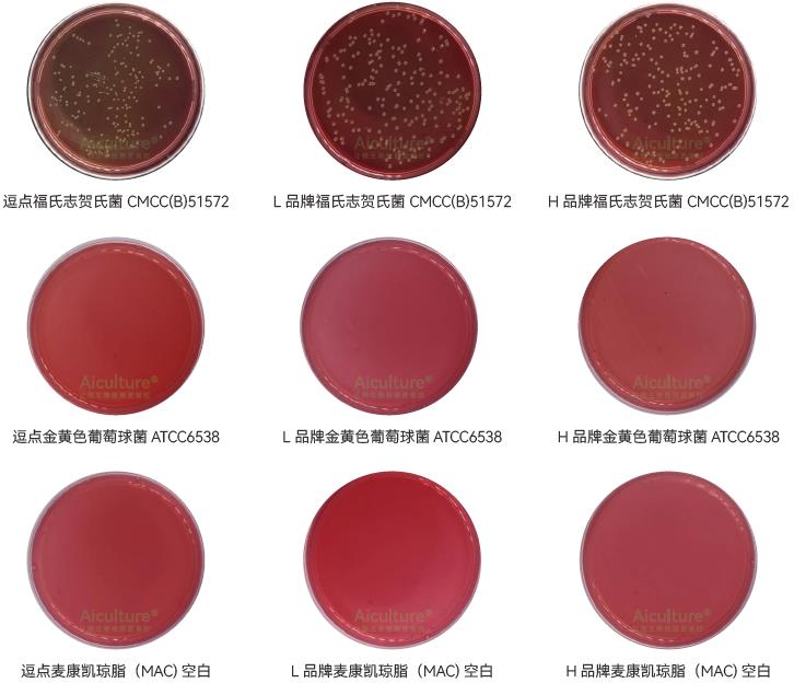 2、选择性:金黄色葡萄球菌 ATCC6538,逗点、L品牌、H品牌满足不生长、抑制的要求;