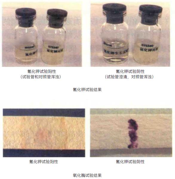 4.4.4氰化钾试验 氰化钾是细菌呼吸链末端的抑制剂,可与呼吸酶作用使酶失去活性,抑制细菌的生长,但有的细菌在一定浓度的氰化钾存在时仍能生长,以此对细菌进行鉴别。