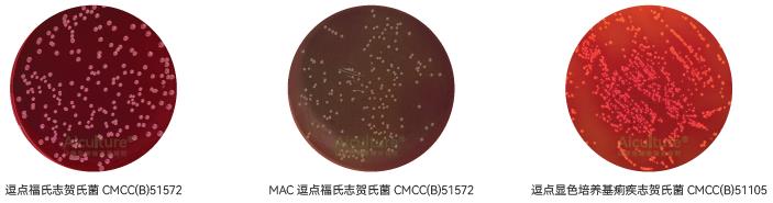 志贺氏菌在MAC 琼脂平板上的菌落特征为无色至浅粉红色,半透明、光滑、湿润、圆形、边缘整齐或不齐菌落。志贺氏菌大多不发酵乳糖产碱,故菌落颜色为红色,可与发酵乳糖产酸(菌落颜色为黄色,或有胆盐沉淀环)的细菌区分。部分宋内志贺氏菌迟缓发酵糖,若培养时间过长会产生粉色菌落,混淆结果。