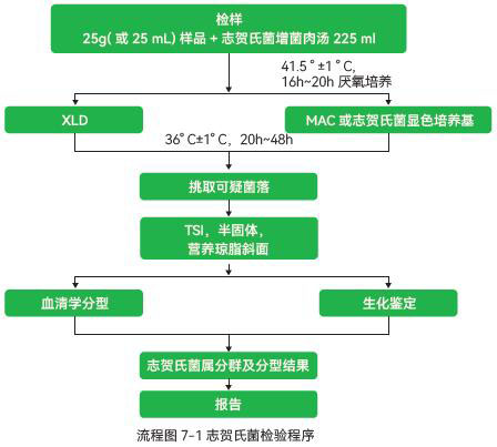 取增菌后的志贺氏增菌液分别划线接种于XLD 琼脂平板和MAC 琼脂平板或志贺氏显色培养基平板上,于36℃ ±1℃需氧培养20h-24h。若出现的菌落不典型或菌落较小不易观察,则继续培养至48h 再进行观察。