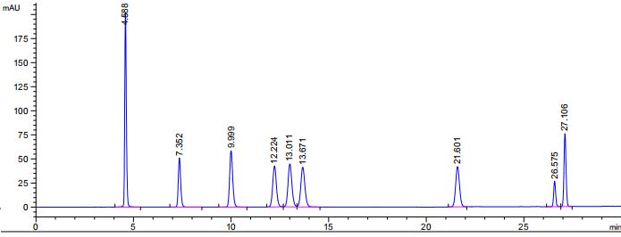 色谱柱:CommaSil® AQ-C18液相色谱柱 (4.6 mm×250 mm,5 μm)