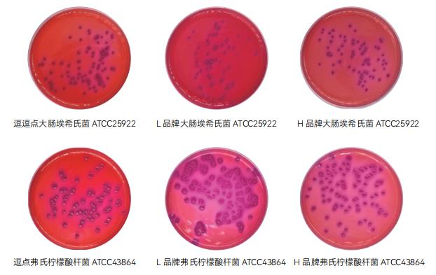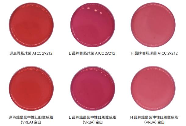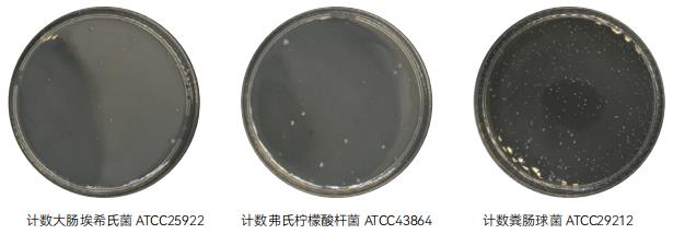| 1. 大肠埃希氏菌 ATCC25922 在 VRBA 板上的菌落特征:有或无沉淀环的紫红色或红色菌落; 2. 弗氏柠檬酸杆菌 ATCC43864 在 VRBA 板上的菌落特征:有或无沉淀环的紫红色或红色菌落 ; 3. 粪肠球菌 ATCC 29212 在 VRBA 板上的菌落特征:选择性 G<5; |