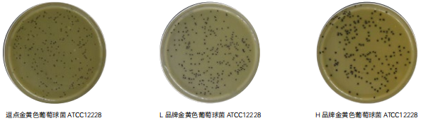 2、特异性 :表皮葡萄球菌 ATCC12228,逗点、H 品牌、L 品牌符合黑色菌落,无混浊带和透明圈的要求 ;