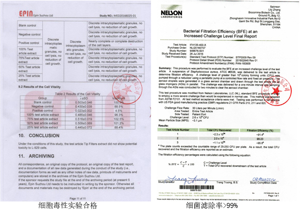 第三方品质测试细胞毒性测试 √ 体外溶血测试 √ 重金属含量测试 √ 析出物溶出物测试 √ 细菌透过率 > 99%